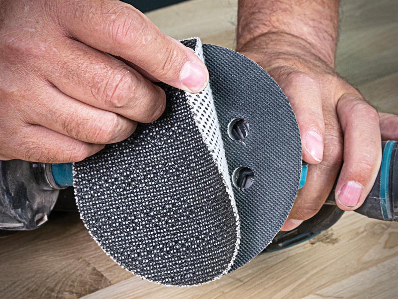 An anti-clogging open coat reduces clogging and allows for faster stock removal, especially on gummy, resinous timbers, fillers and paint removal. The mesh pattern allows unrestricted airflow across the entire sanding base for dust-free sanding. Simply rinse with water to dislodge sanding residue and re-use for maximum lifespan.