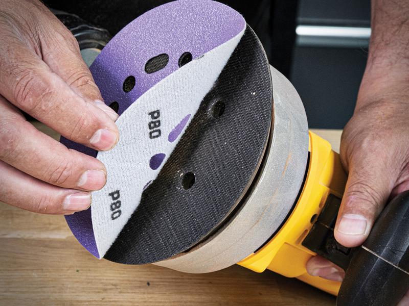 An anti-clogging open coat reduces clogging and allows for faster stock removal, especially on gummy, resinous timbers, fillers and paint removal. The elongated hole pattern ensures base compatibility and aids maximum extraction capability.