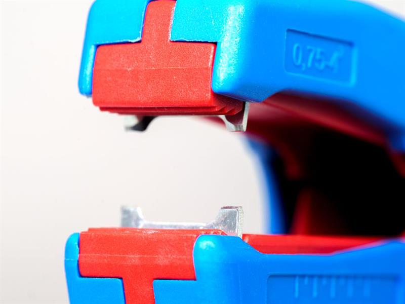 The Weicon® No. 7-F Flat Cable Stripper is suitable for 2 or 3 core PVC insulated flat cables from 0.75 - 4.0mm². The tool offers a fine-tuning mechanism, which can be adjusted to various positions. It also has a visual length scale from 8-24mm. A well-accessible side cutter is integrated in the tool, which is suitable for cable diameters up to 3mm and has replaceable blades.