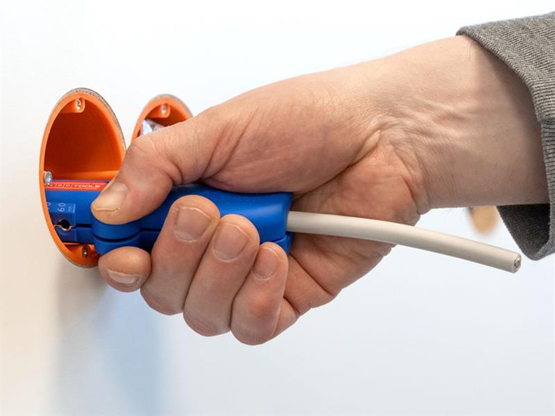It also offers fast and easy longitudinal cutting due to optimised cable routing in the housing. The cutting depth does not need to be manually adjusted. All common flexible and solid conductors with a cross-section of 0.5-6mm² can be processed in the integrated stripping area. Cables can also be stripped flush with the tool in hard-to-reach places or in junction and distribution boxes. Fitted with an ergonomic handle which makes the tool safe and easy to handle.